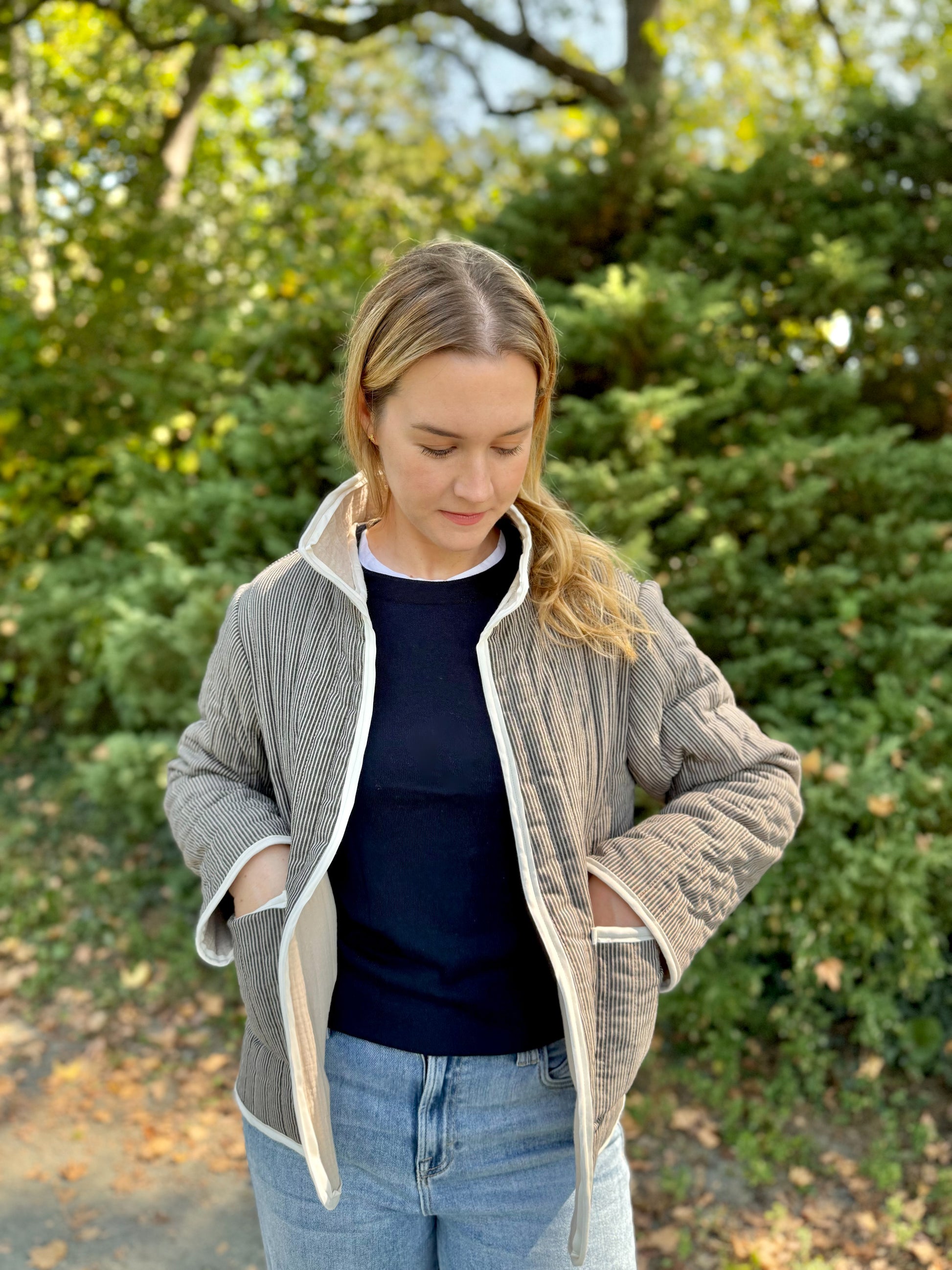 Stay warm and stylish this fall with our pin-striped quilted jacket. Durable yet comfy, this jacket ensures accountability for long-lasting wear, ideal for transitioning between seasons.